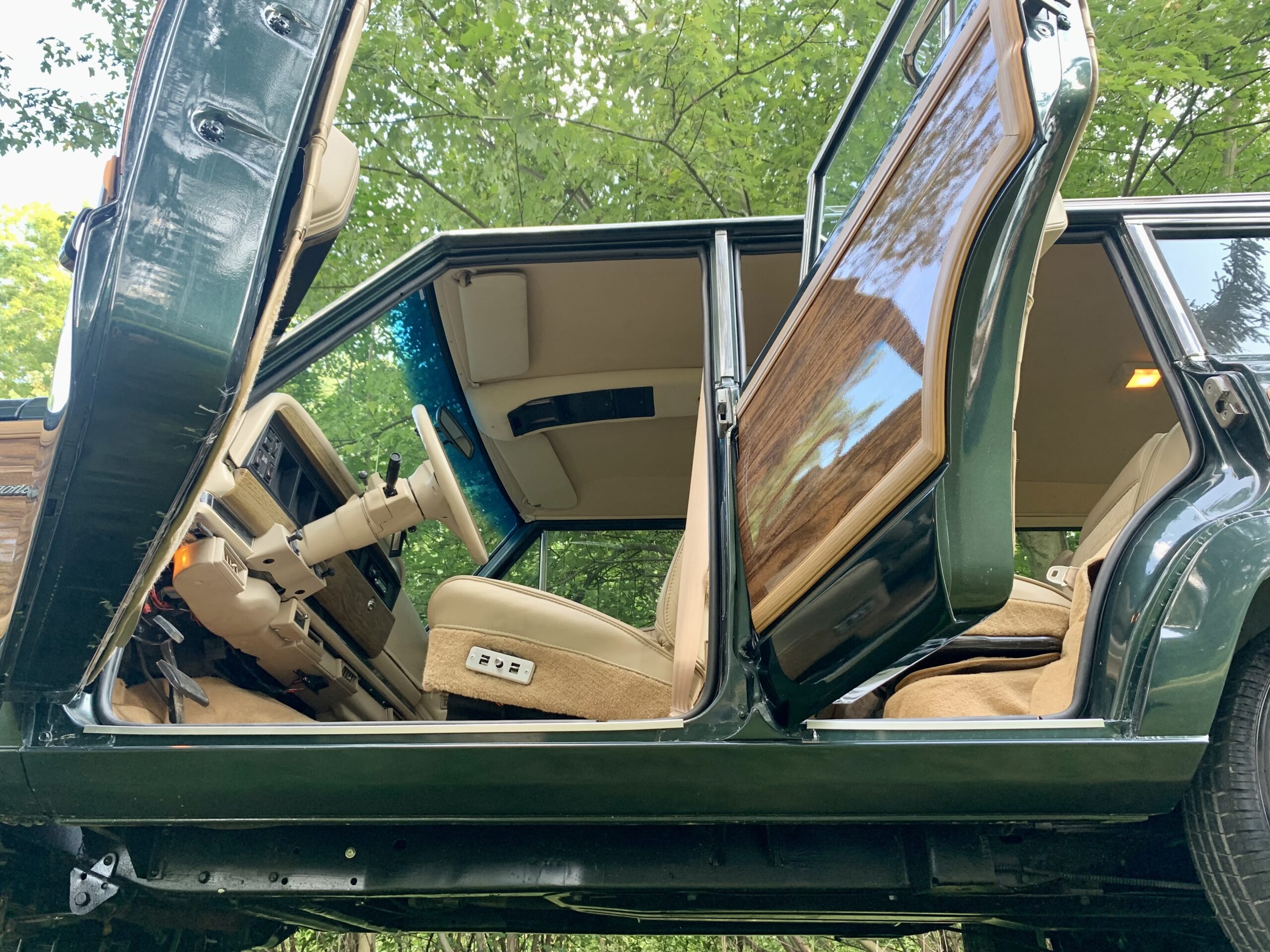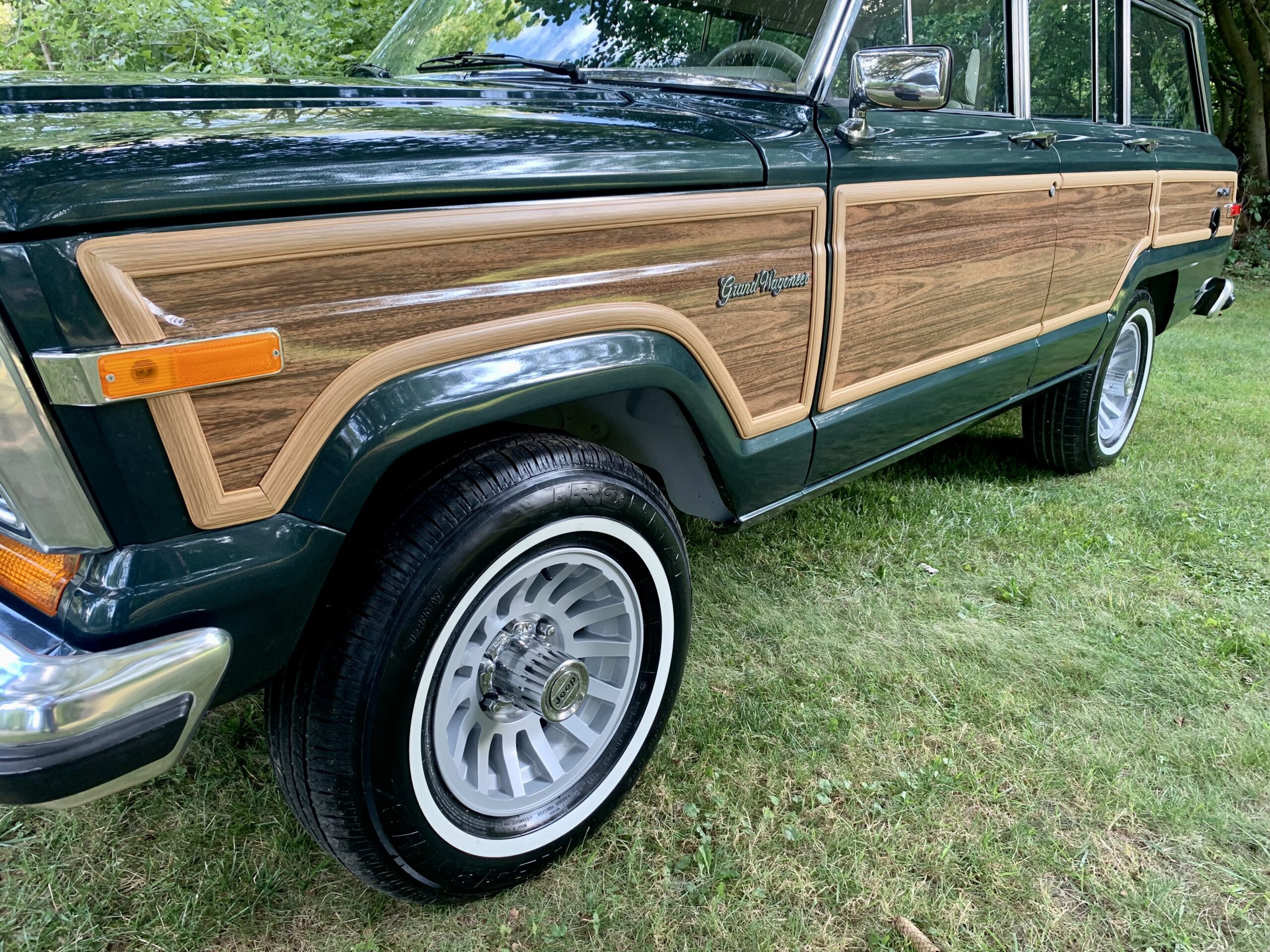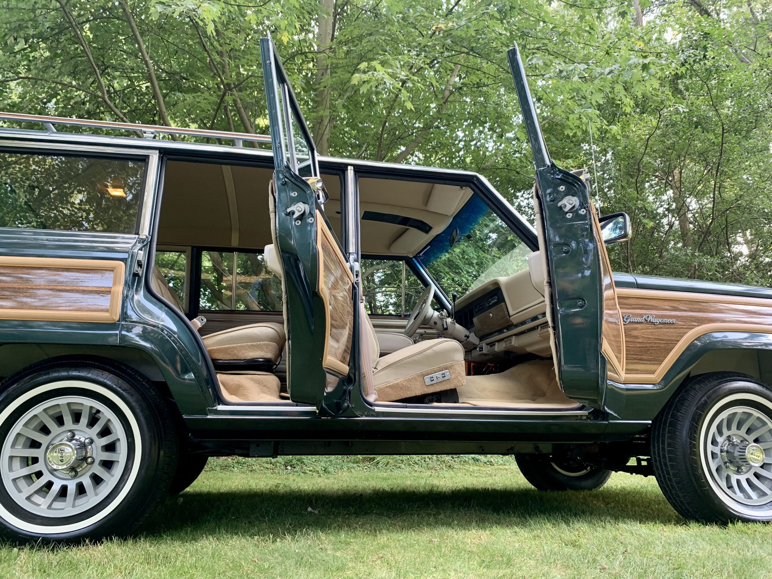 GRAND WAGONEER BY CLASSIC GENTLEMAN FRAME OFF RESTORATION INCLUDING NEWLY REMANUFACTURED ENGINE, UPGRADED FUEL INJECTION, REBUILT TRANSMISSION, MULTITUDE OF NEW ELECTRICAL COMPONENTS, NEW SUSPENSION, NEW BRAKING COMPONENTS, NEW PAINT, NEW FRONT GRILL, NEW WOOD SIDING, NEW WOOD TRIM, REFINISHED WHEELS WRAPPED WITH FRESH TIRES, NEWLY REUPHOLSTERD LEATHER SEATS, NEW CARPET, NEW HEADLINER, RENEWED DASHBOARD, RENEWED INTERIOR DOOR PANELS, JUST A FEW HIGHLIGHTS – OTHER SIDE OF THE PLANET COMPARED TO A TYPICAL GRAND WAGONEER.