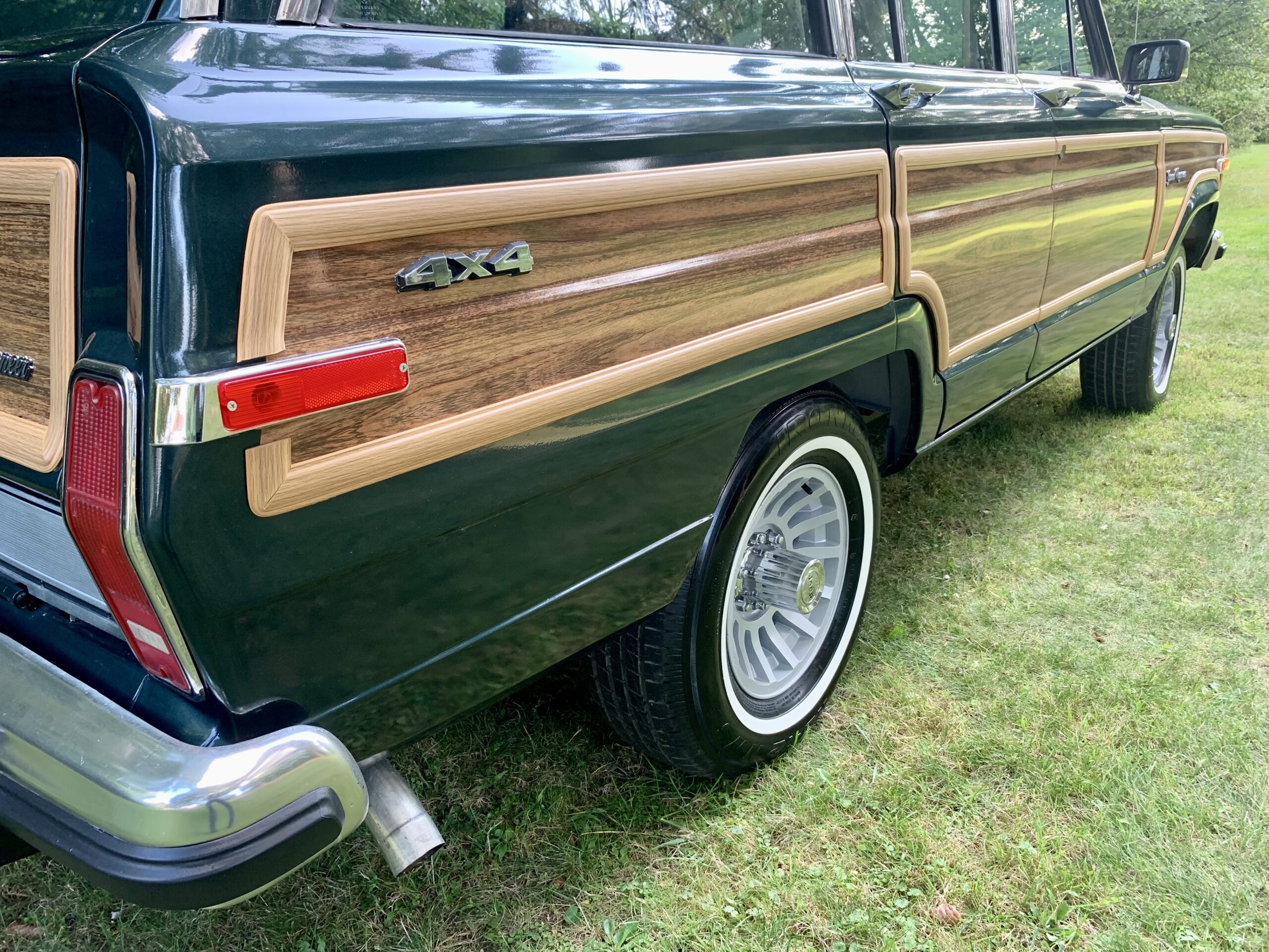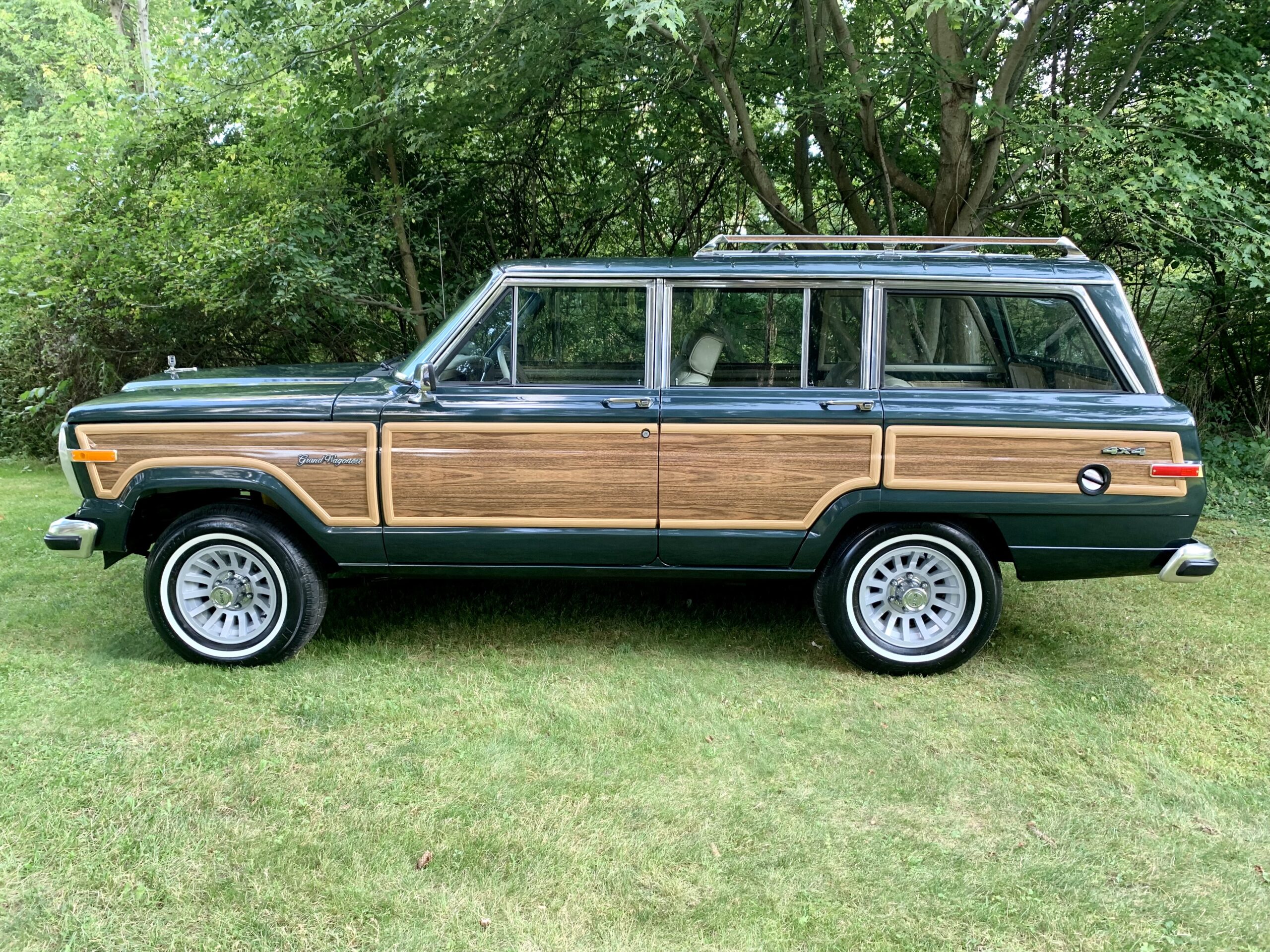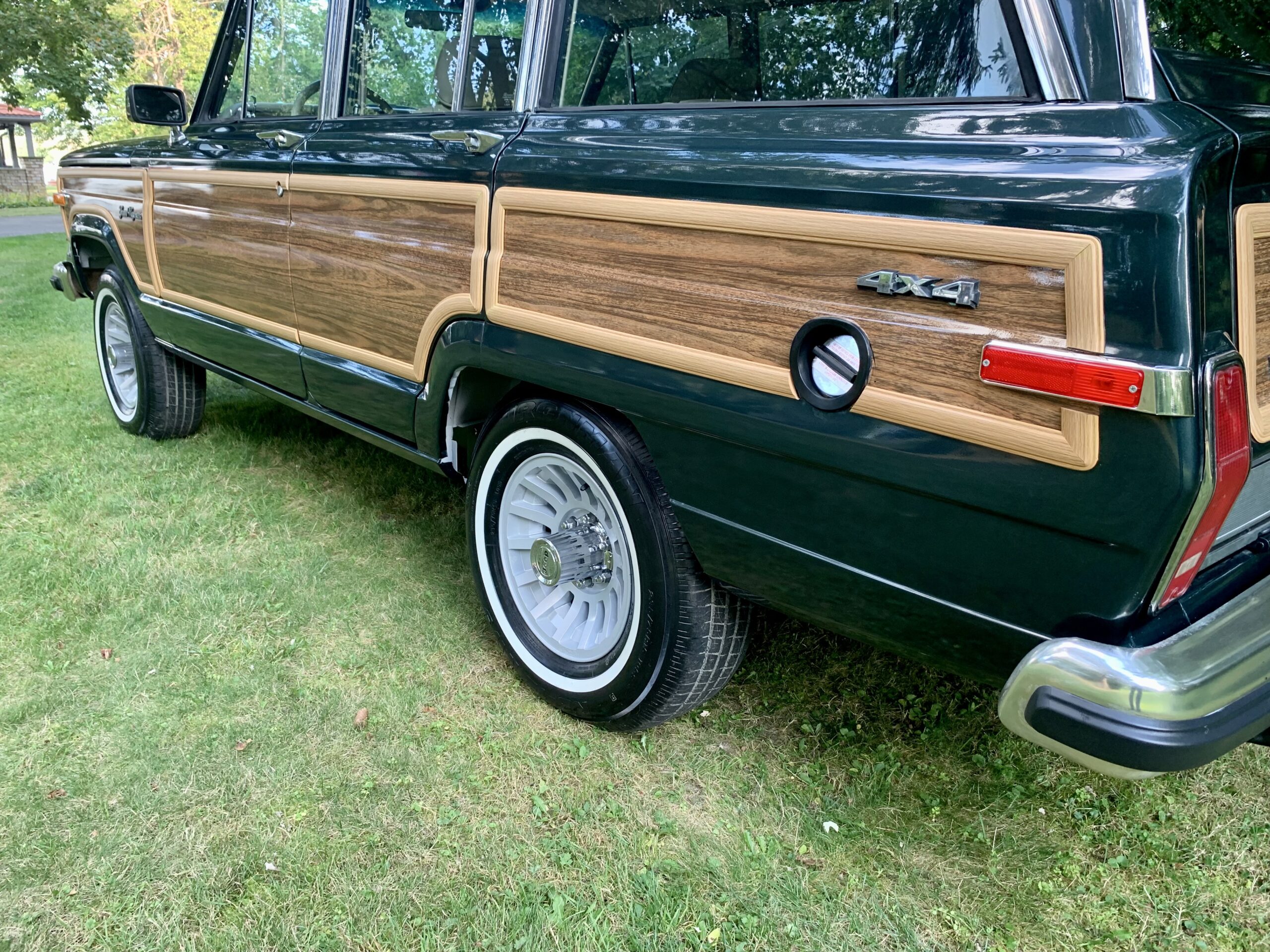 GRAND WAGONEER BY CLASSIC GENTLEMAN FRAME OFF RESTORATION INCLUDING NEWLY REMANUFACTURED ENGINE, UPGRADED FUEL INJECTION, REBUILT TRANSMISSION, MULTITUDE OF NEW ELECTRICAL COMPONENTS, NEW SUSPENSION, NEW BRAKING COMPONENTS, NEW PAINT, NEW FRONT GRILL, NEW WOOD SIDING, NEW WOOD TRIM, REFINISHED WHEELS WRAPPED WITH FRESH TIRES, NEWLY REUPHOLSTERD LEATHER SEATS, NEW CARPET, NEW HEADLINER, RENEWED DASHBOARD, RENEWED INTERIOR DOOR PANELS, JUST A FEW HIGHLIGHTS – OTHER SIDE OF THE PLANET COMPARED TO A TYPICAL GRAND WAGONEER.